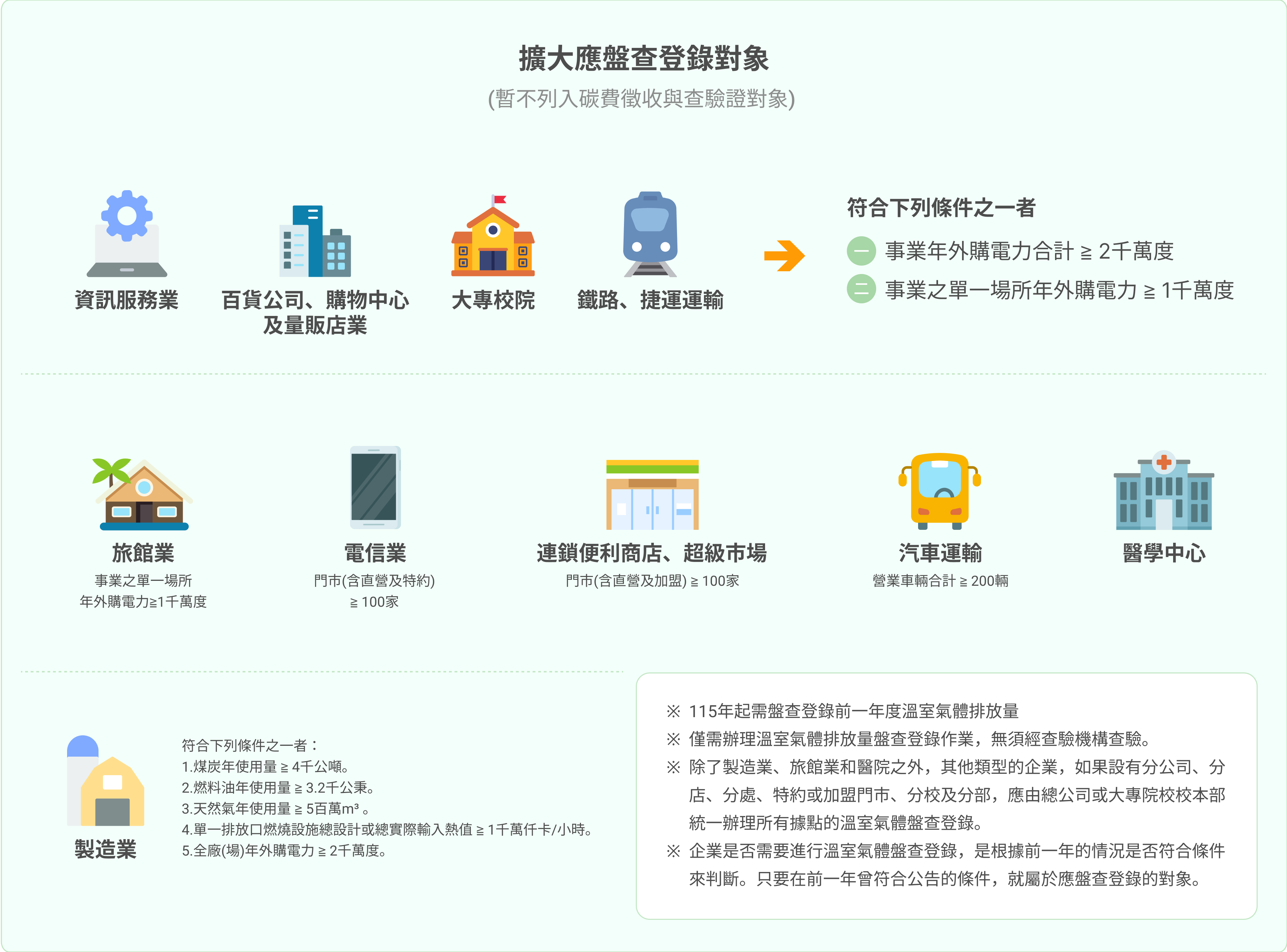 尚未受到規範的產業:僅需進行碳排放估算